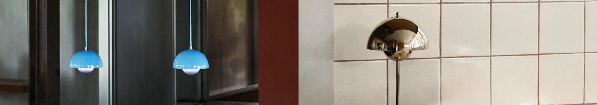 Upptäck Flowerpot av Verner Panton, en ikon inom belysningsdesign som symboliserar Flower-power erans kreativa essens. Denna kollektion av &Tradition erbjuder stilrena taklampor och bordslampor i en mängd livfulla färger. Varje Flowerpot lampa utstrålar ett behagligt och bländfritt ljus tack vare dess dolda ljuskälla och mjuka, rundade former. Flowerpot serien finns tillgänglig i flera storlekar: den kompakta VP1 är idealisk för mindre utrymmen eller i grupp, medan VP7 passar perfekt över matbordet och den största, VP2, dominera i större rum. Dessa lampor är inte bara praktiska utan även mångsidiga – experimentera med olika storlekar och höjder för att skapa ett personligt och unikt uttryck i ditt hem. Oavsett om du föredrar klassiskt svart och vitt eller något mer djärvt som senapsgult, erbjuder Flowerpot-kollektionen alternativ för varje smak och inredningsstil. Välj VP3 för en funktionell touch på avlastningsbordet, eller VP4 för att addera elegans till ditt skrivbord. Varje Flowerpot lampa är en hyllning till designarvet från 1968 och Verner Pantons visionära estetik.