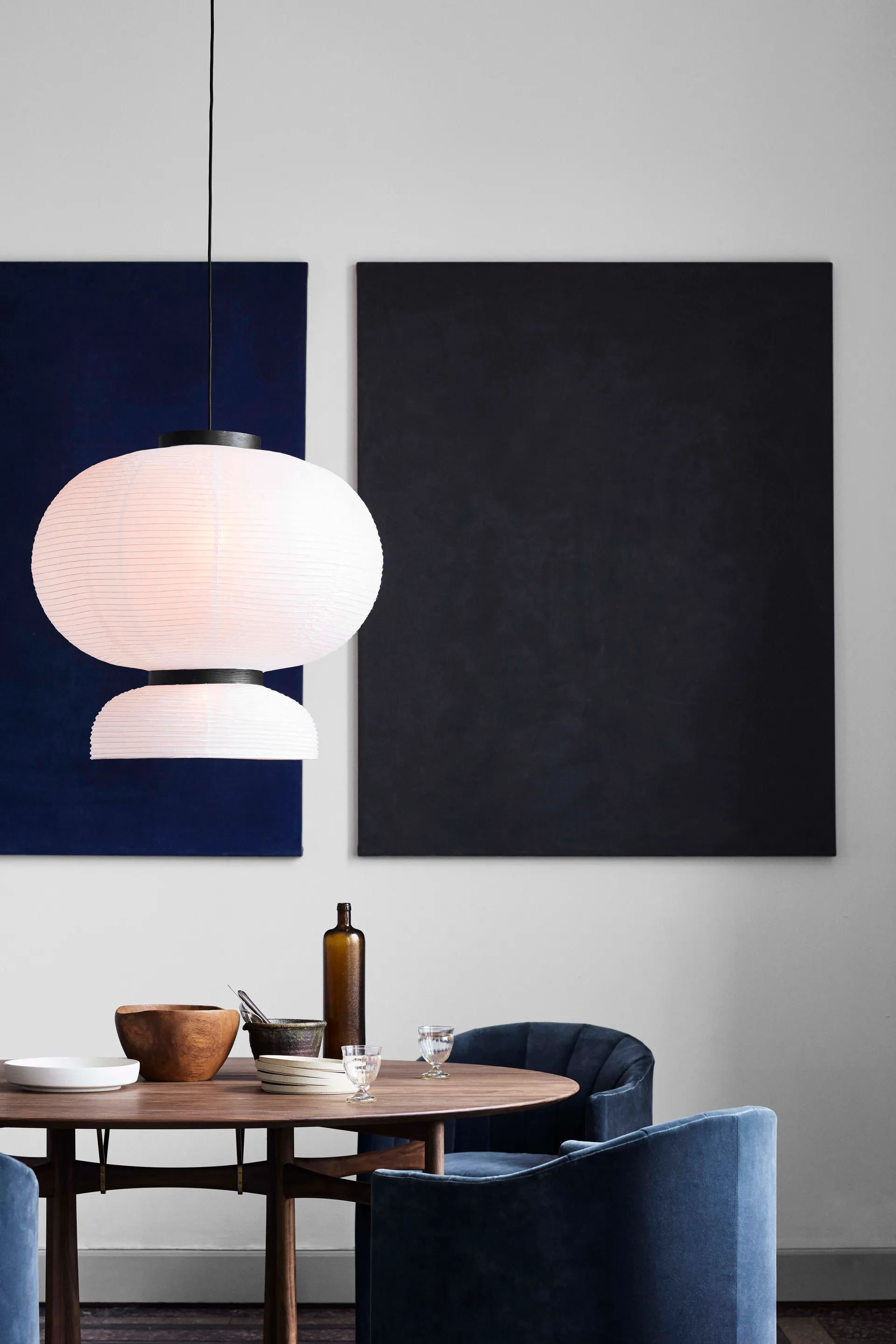 Formakami taklampa från &Tradition är formgiven av Jaime Hayon och förenar traditionella asiatiska lanternor med en lekfull, samtida estetik. Den handgjorda lampan har ett tunt rispapper som sprider ett mjukt, behagligt sken och skapar en varm atmosfär i hemmet. Formakami fungerar lika bra över matbordet som i läshörnan eller hallen — enkel att hänga upp och lätt att matcha med din inredning. En dekorativ och funktionell detalj som ger rummet karaktär och inbjudande ljus.